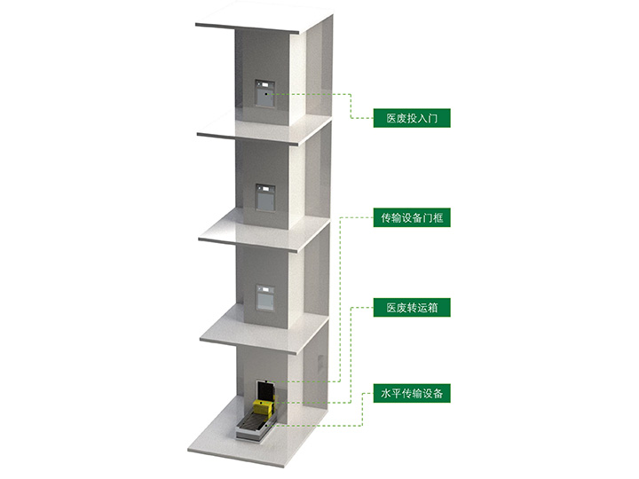 高層建筑,貨梯不再運(yùn)輸醫(yī)療垃圾,等于增加了垂直電梯數(shù)目,縮短了人員上下樓的時(shí)間。各樓層將產(chǎn)生的醫(yī)療垃圾同時(shí)可以放入系統(tǒng),單個(gè)樓層也可以放入多箱醫(yī)療垃圾。一位專業(yè)的收集人員,只需在地下室開(kāi)動(dòng)系統(tǒng),就可以完成所有樓層的醫(yī)療垃圾運(yùn)輸。