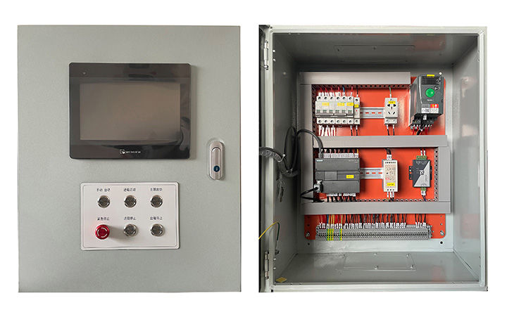 主控系統(tǒng):采用PLC可編程邏輯控制器、液晶觸摸屏、變頻器等電氣元件組成;