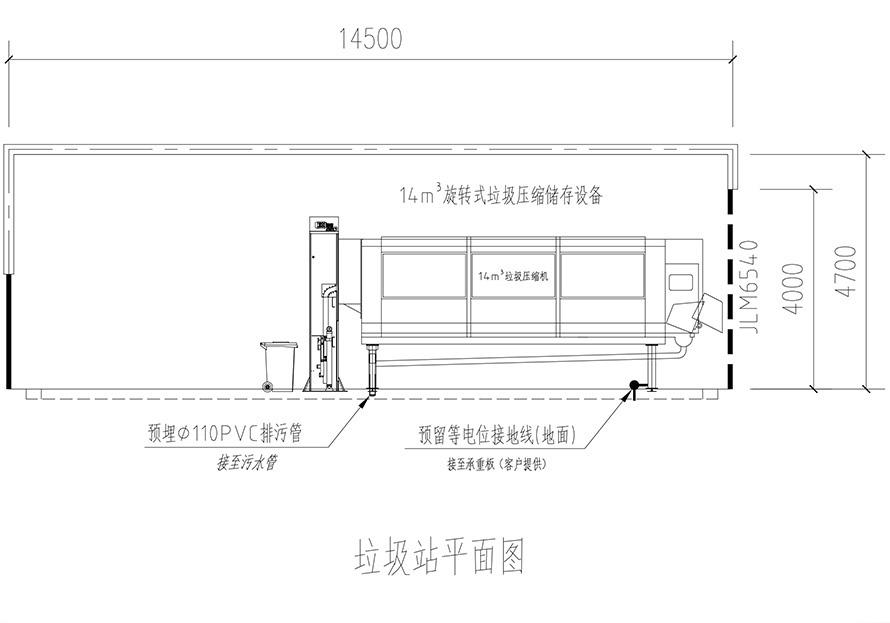 3、設備垃圾投入口一側(cè)的下方預留ø160排污管。
